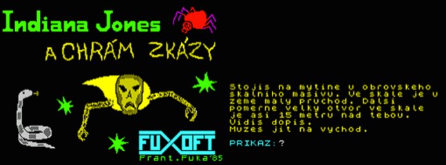 He worked under the alias Fuxoft, a combination of “software” and his name. While text adventures were popular in other countries, he was the first to create ones written entirely in Czech, and Czech-speakers took notice. A fan of movies, he made multiple games about Indiana Jones, including a popular text-adventure in 1985 called Indiana Jones a Chram Zkazy (“Indiana Jones and the Temple of Doom”), which differed significantly from the film’s plot as Fuka had only seen Raiders of the Lost Ark by the time he finished the game. The adventures were released over BBS, or “bulletin board system,” a very early precursor to the Internet, and many Czechs were introduced to Indiana Jones through the game.